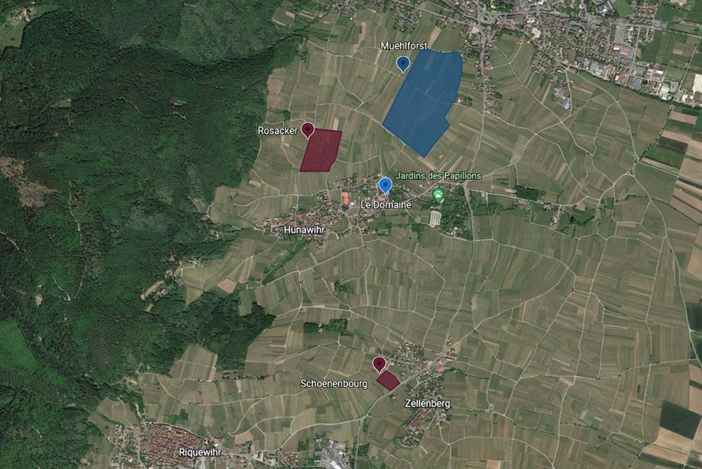- Nos vignes, le micro-climat & exposition: en bordure de forêt, à l’ombre en fin de journée et présence d’un air froid nocture descendant la montagne vosgienne => microclimat frais et tardif. Pente marquée – exposition Est – altitude 300 mètres